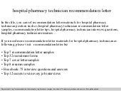 Pharmacy Technician Letter Of Recommendation. Professionally Written Pharmacy Letter of Recommendation Sample. Pharmacy technicians are critical to helping pharmacies achieve quality-care goals, build efficiency, and improve patient Technicians get concise recommendations and clinical resources to guide their interactions with both pharmacists and patients, all focused on.