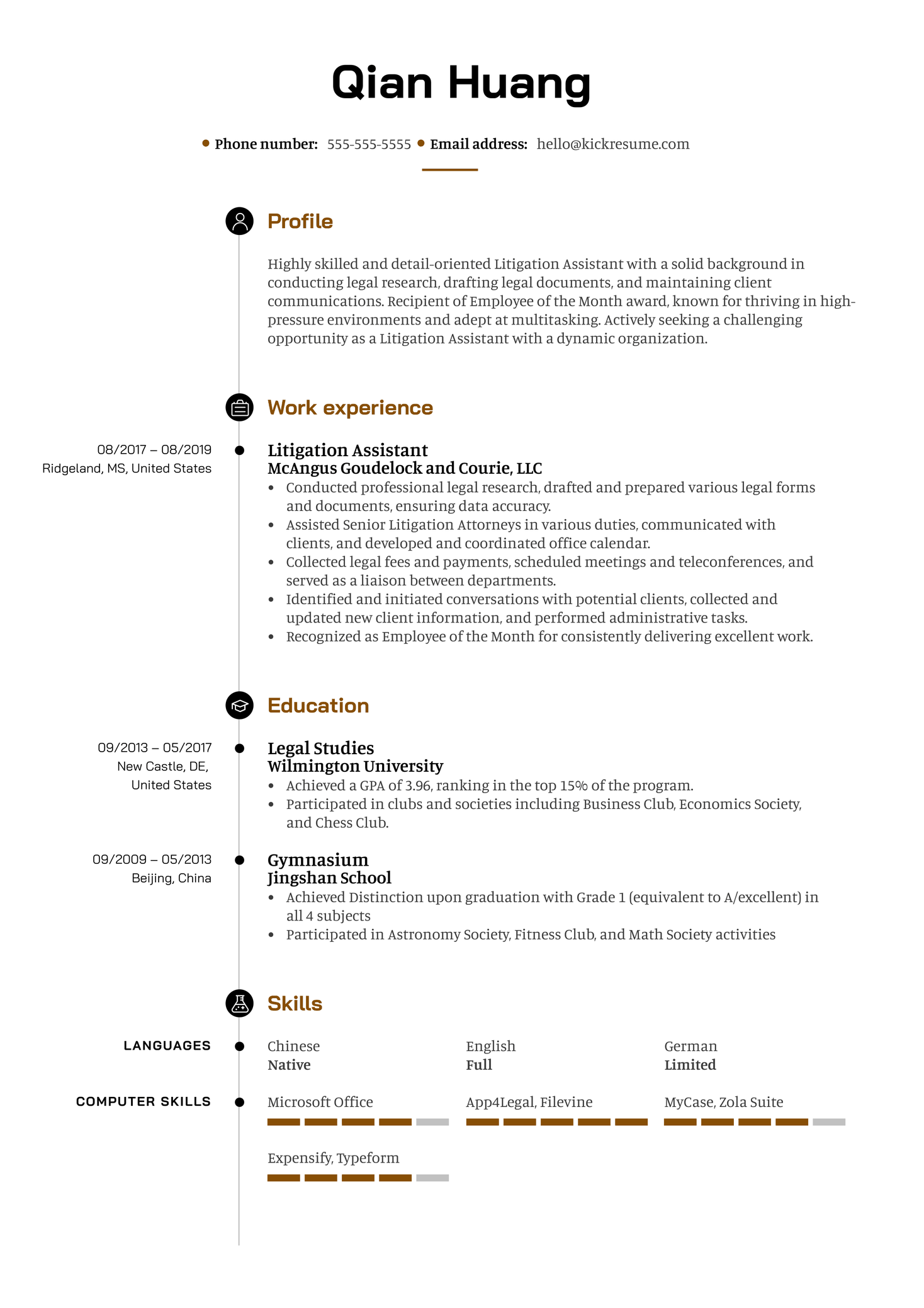 Litigation Assistant Resume Example | Kickresume